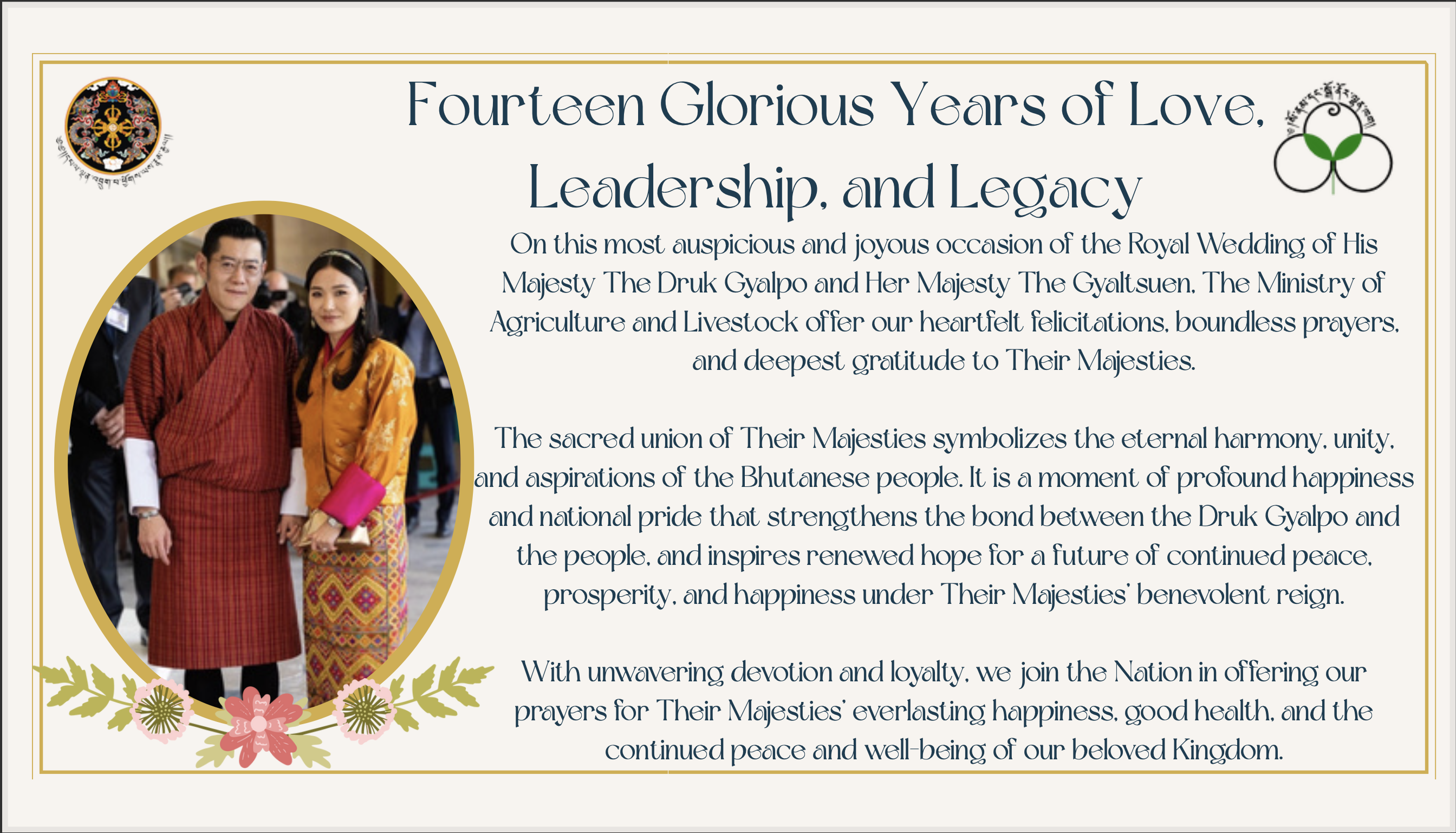 On this most auspicious and joyous occasion of the Royal Wedding of His Majesty The Druk Gyalpo and Her Majesty The Gyaltsuen, The Ministry of […]